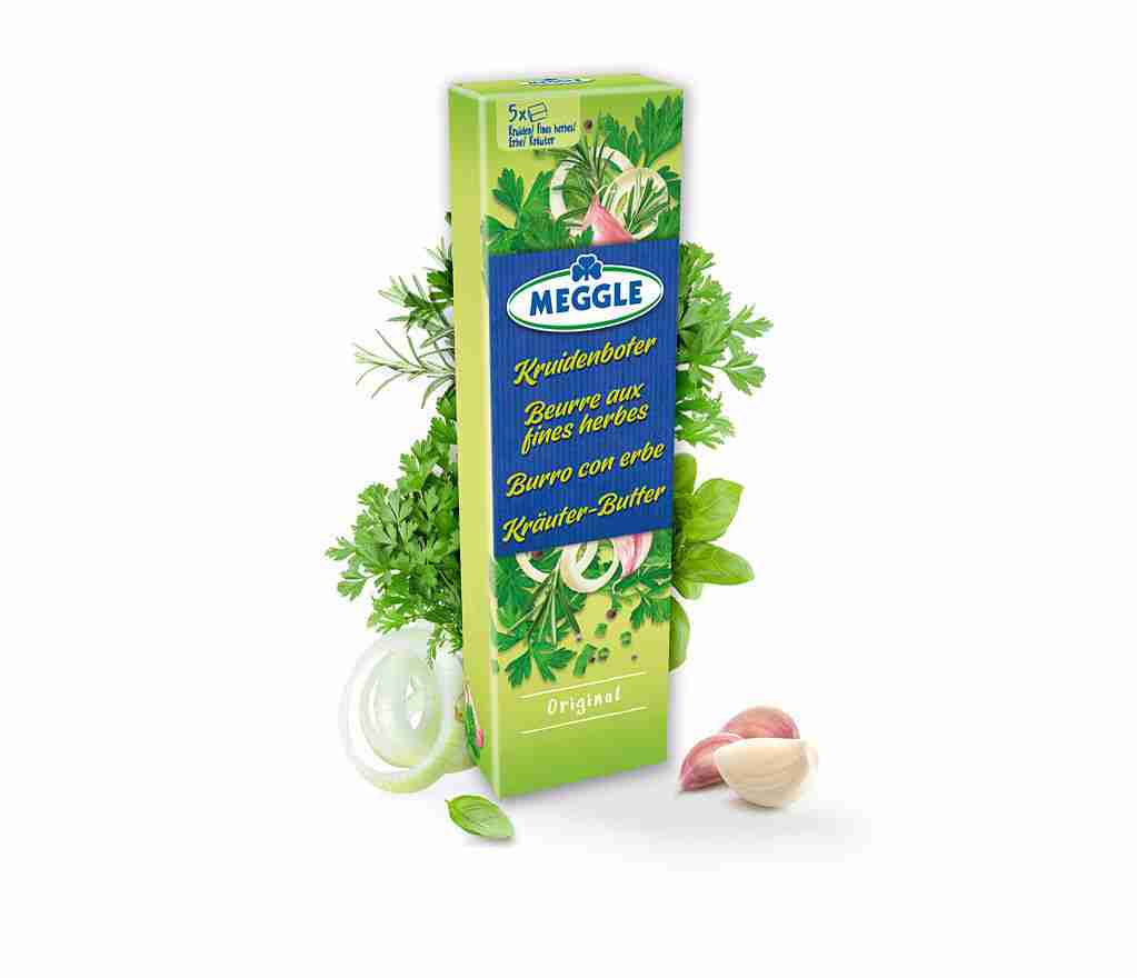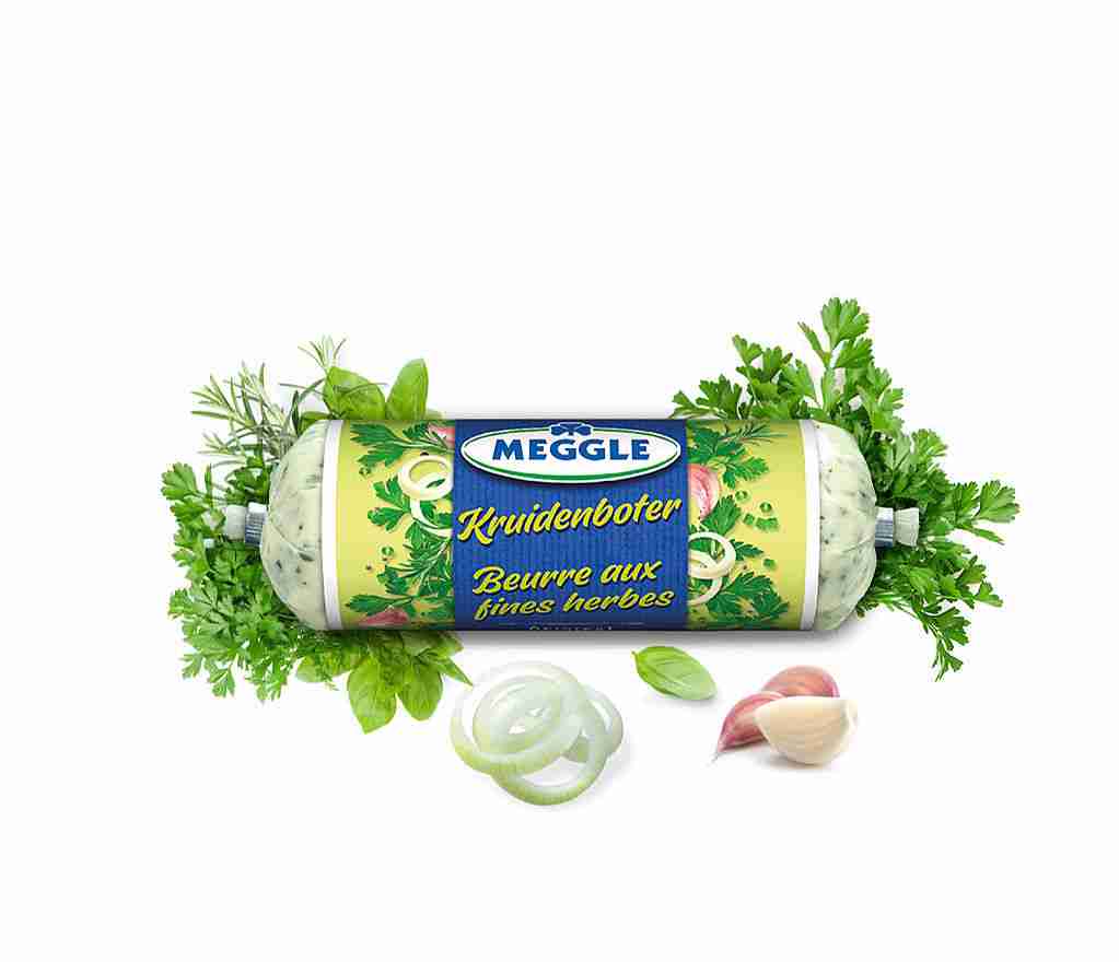 De kruidenboter behoort sinds 1968 tot één van de best bewaarde geheimen van onze MEGGLE boterspecialisten. Na de ontdekking door Josef Anton Meggle II werd de receptuur verwoed verder ontwikkeld totdat ze aan de hoge eisen van onze productontwikkelaars voldeed. Met tal van verse kruiden en een uitgesproken intensieve smaak mag de kruidenboter tijdens het barbecueën gewoonweg niet ontbreken.