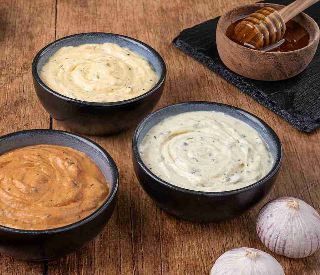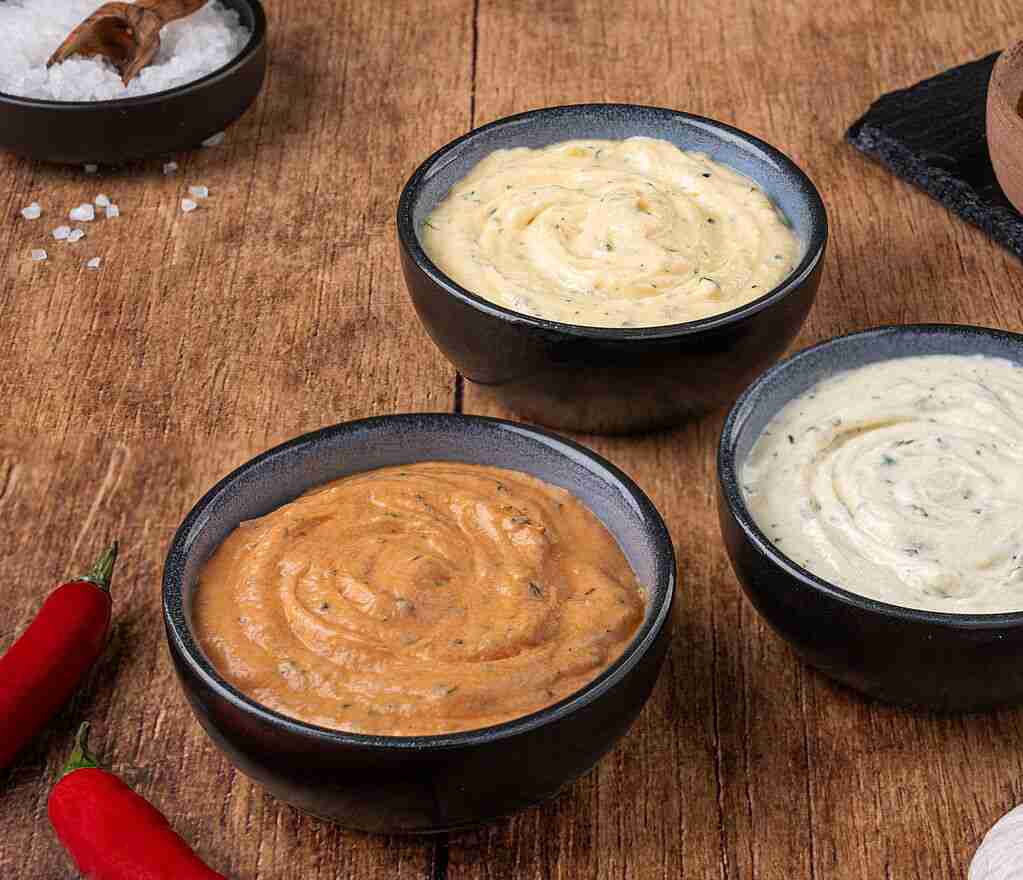 Voor de andere twee sausvarianten, roer je de respectievelijke extra ingrediënten erdoorheen.